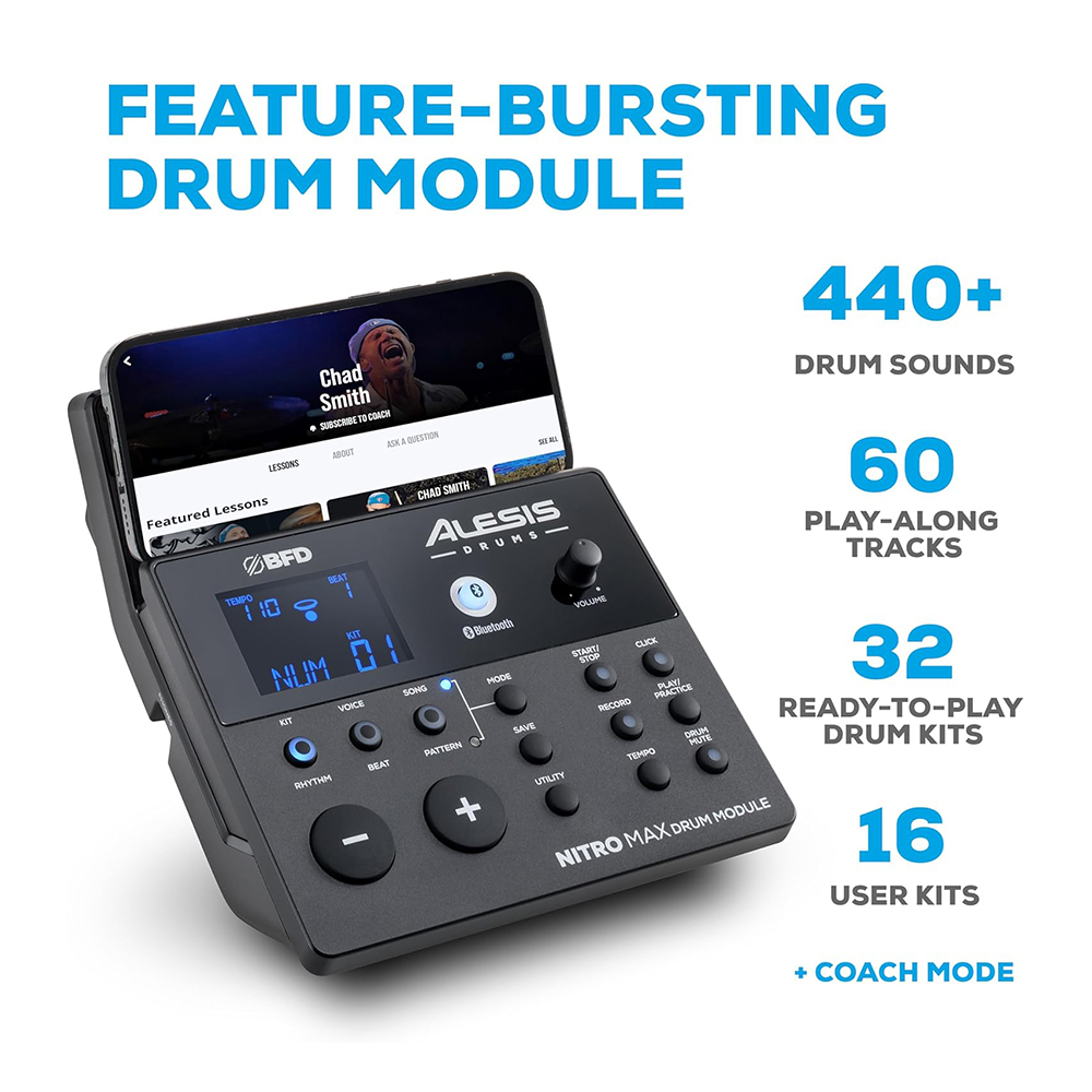 La Alesis Nitro Max Kit es una batería electrónica completa que incluye pads de malla, incorpora el módulo Nitro Max con más de 400 sonidos de percusión, kits personalizables y conexión Bluetooth. Ideal para principiantes y músicos avanzados que buscan versatilidad y comodidad.