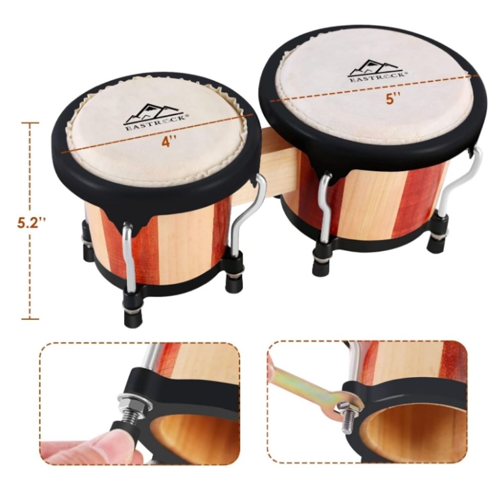 Es un regalo ideal: este bongó es un regalo musical ideal, que puede estimular el talento musical de los niños, tamaño portátil, fácil de transportar y tocar para uso en interiores y exteriores.