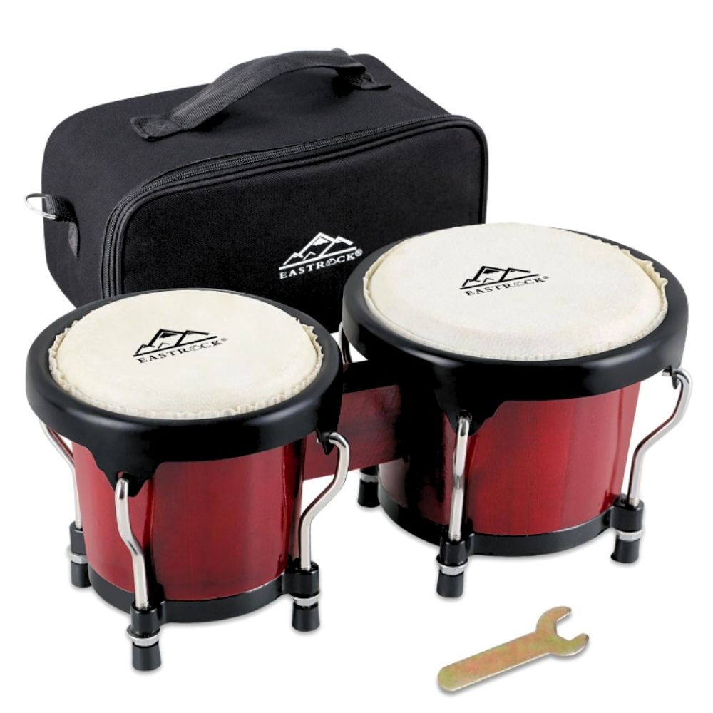 Incluye: 1 bongó EastRock Mini de 4 «+5», 1 llave de ajuste, estuche en lona.